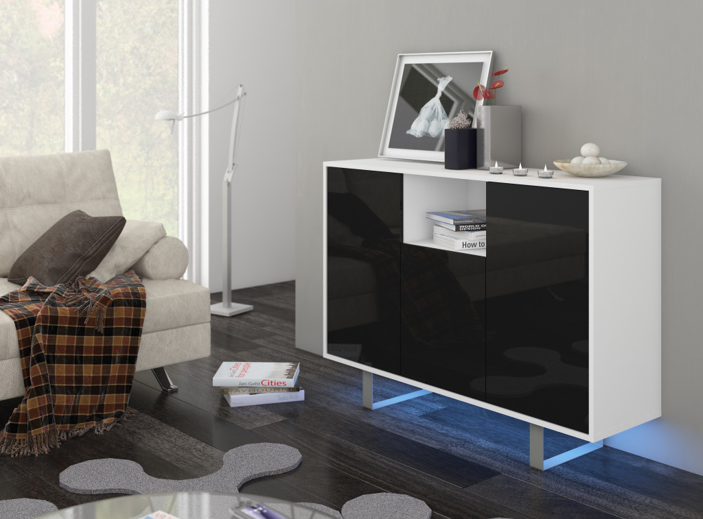 King komód nagy 3 ajtó - Fehér - Fényes fekete