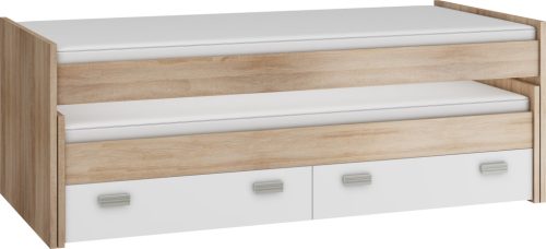Kitty dupla ágykeret 2 ágyneműtartó fiókkal - Világos Sonoma tölgy - Fehér