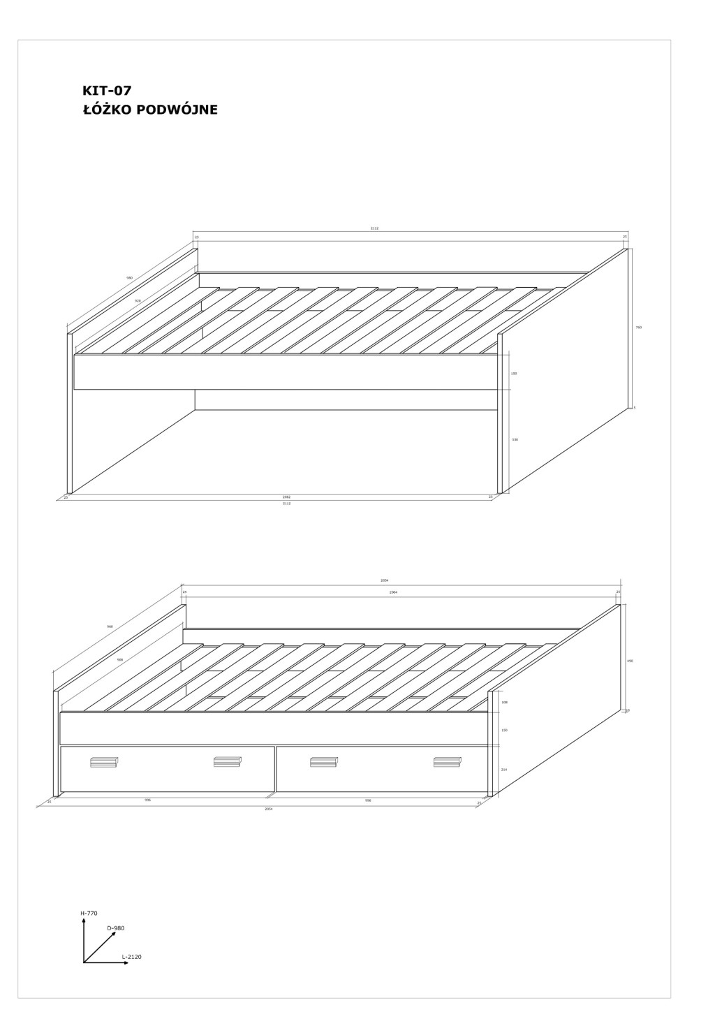 Kétszemélyesre bővíthető egyszemélyes magas ágykeret 2 kihúzható ágyneműtartó fiókkal és ágyrácsokkal, matracok nélkül