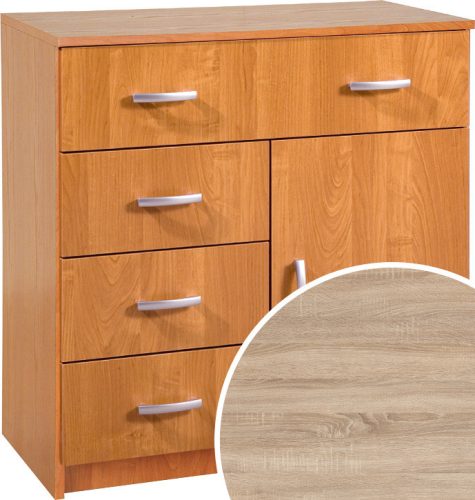 Komód 1 ajtó 4 fiók K-8044S1D - Világos Sonoma tölgy