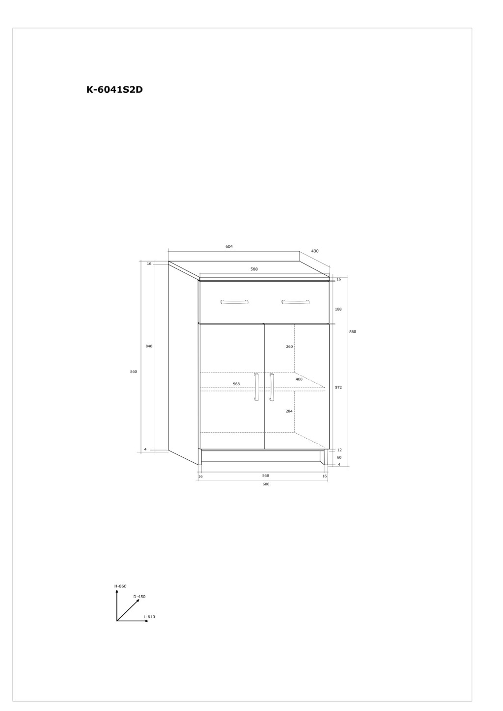 Komód 2 ajtó 1 fiók K-6041S2D - Endgrain tölgy