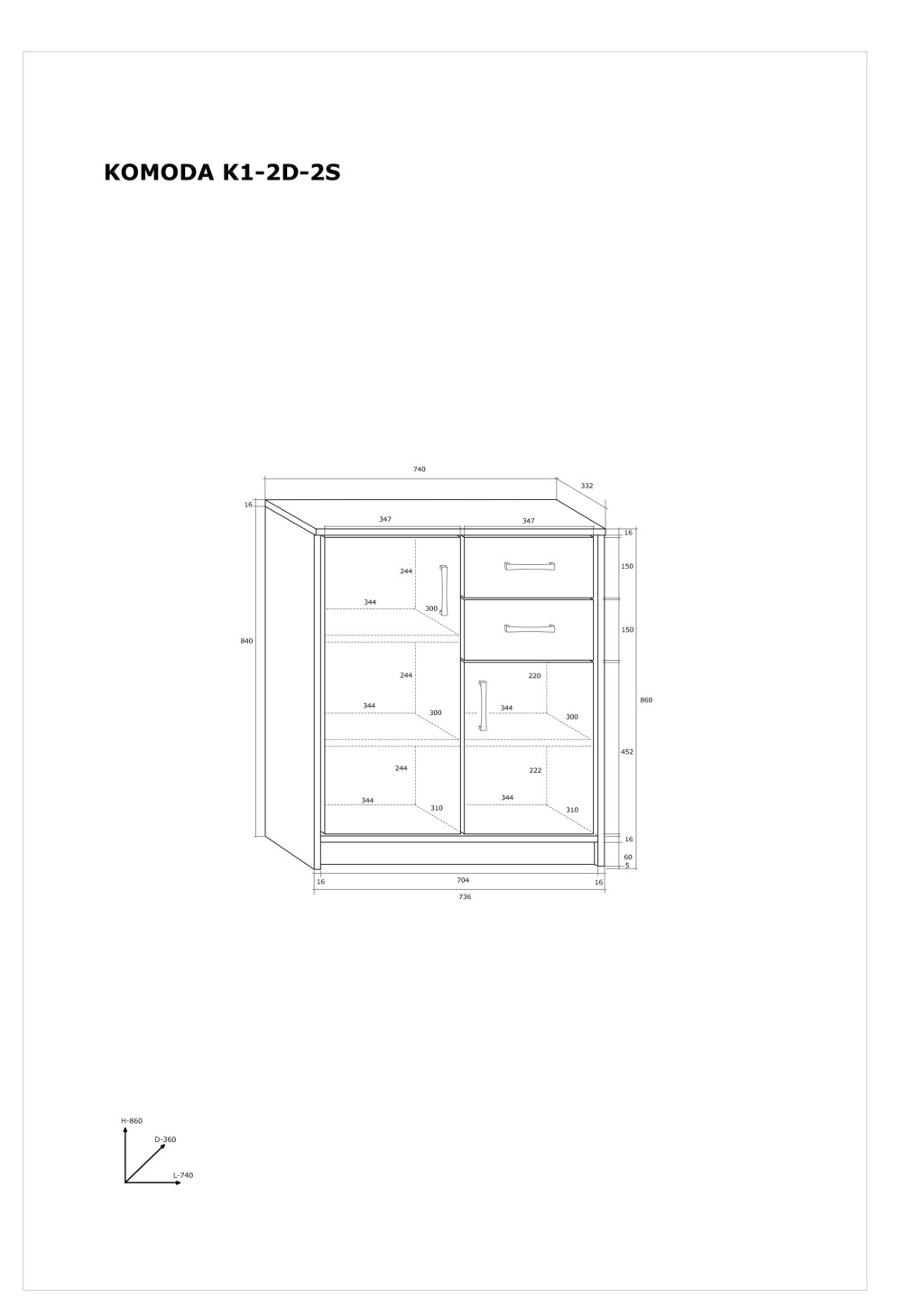 Komód 2 ajtóval 2 fiókkal az ajtók mögött polcokkal