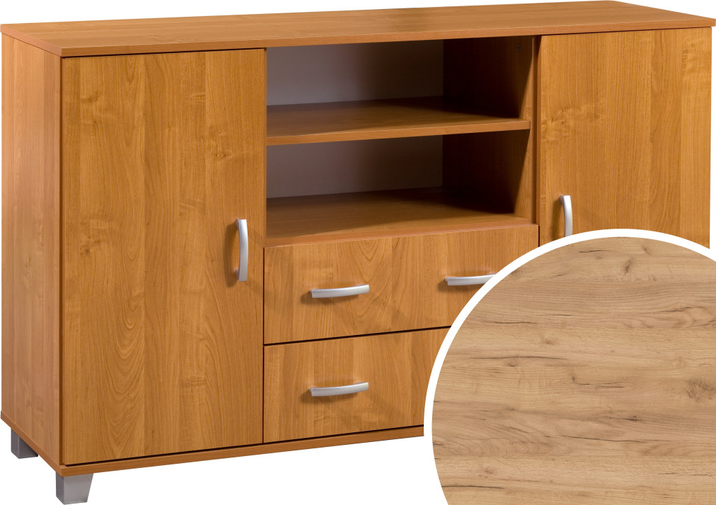 Komód 2 ajtó 2 fiók nyitott polc KN-1442S2DW6 - Arany tölgy