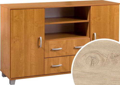 Komód 2 ajtóval 2 fiókkal az ajtók mögött polcokkal és nyitott polcokkal