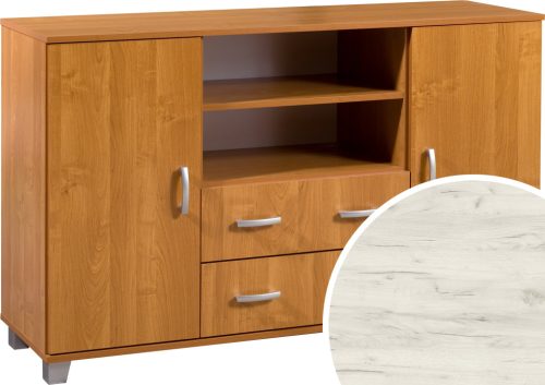 Komód 2 ajtóval 2 fiókkal az ajtók mögött polcokkal és nyitott polcokkal
