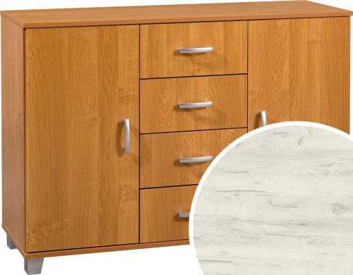 Komód 2 ajtó 4 fiók KN-1244S2D - Fehér tölgy