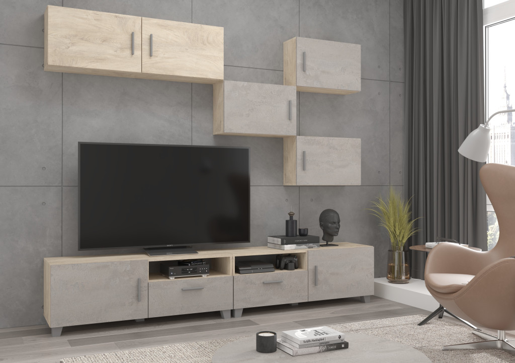 Kuga TV-állvány - Endgrain tölgy - Beton szürke