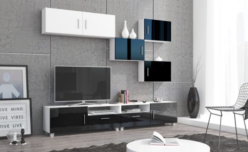 TV-állvány 2 ajtóval 2 fiókkal nyitott polcokkal ajtós fali szekrényekkel