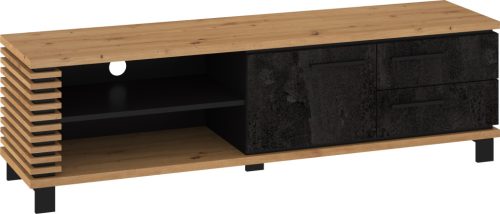 Lamir TV-állvány 1 ajtó 2 fiók - Artisan tölgy - Beton fekete - Fekete