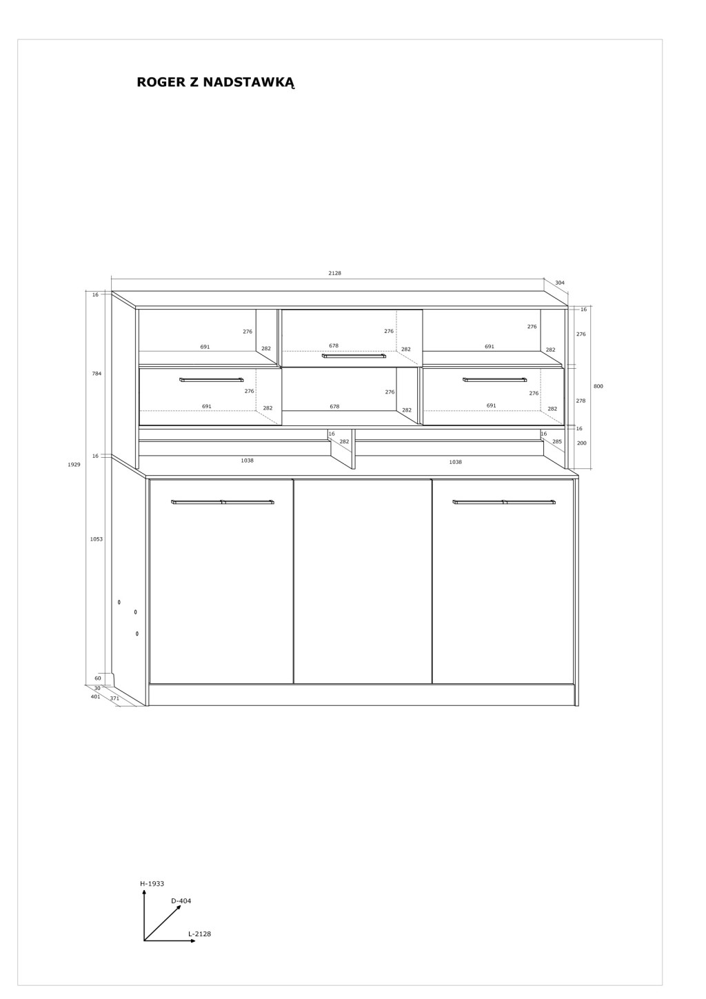3-ajtós polcos magasító elem Roger szekrényágyhoz, a középeső ajtó felfelé, a két szélső ajtó lefelé nyílik (a képen látható Roger szekrényágyat az ár nem tartalmazza)