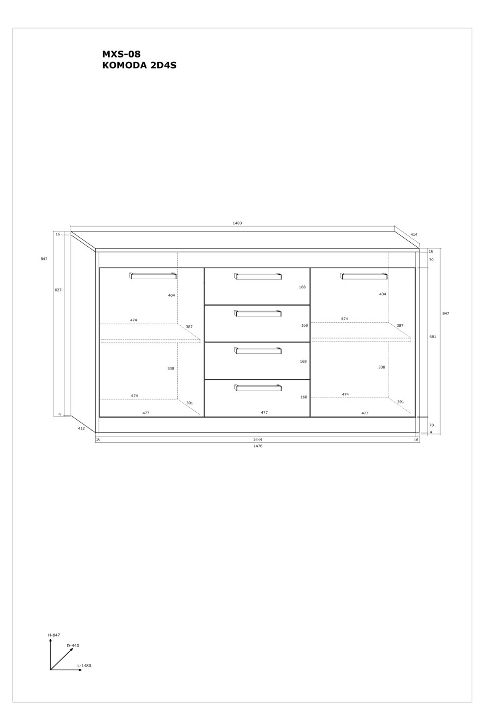 Komód 2 ajtóval 4 fiókkal az ajtók mögött polcokkal