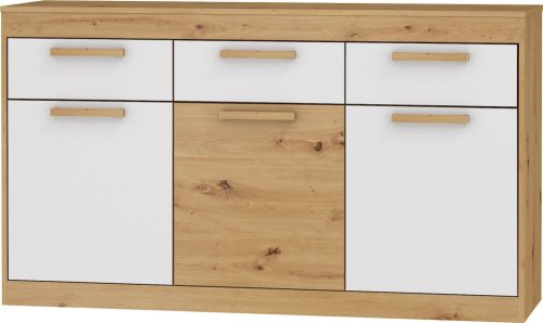 Maximus komód 3 ajtó 3 fiók - Artisan tölgy - Fényes fehér