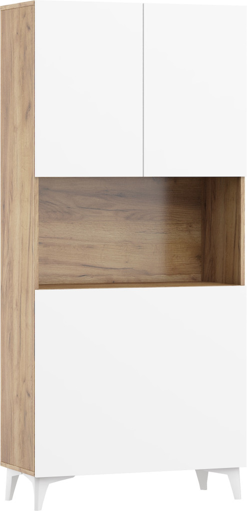 Megan 1 többfunkciós szekrény felhajtható asztallappal 3 ajtó - Arany tölgy - Fényes fehér