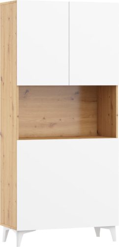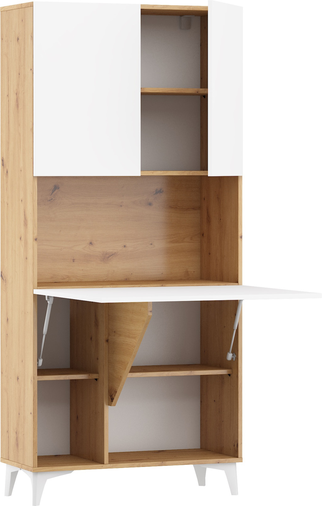 Megan 1 többfunkciós szekrény felhajtható asztallappal 3 ajtó - Artisan tölgy - Fényes fehér