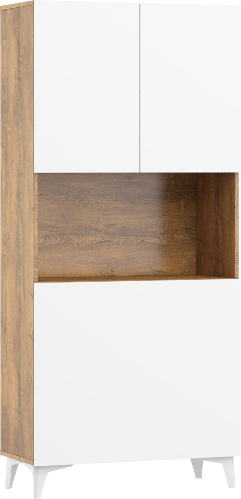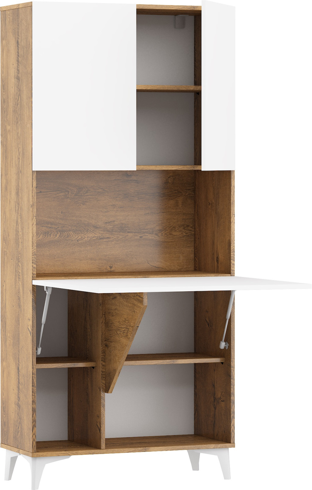 Többfunkciós 3-ajtós szekrény polcokkal, az alsó ajtó felhajtható és íróasztalként vagy kétszemélyes étkezőasztalként is használható