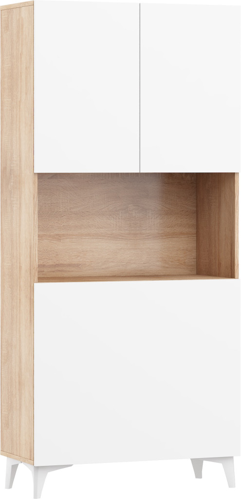 Megan 1 többfunkciós szekrény felhajtható asztallappal 3 ajtó - Világos Sonoma tölgy - Fényes fehér