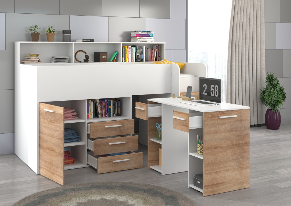 Neo galériaágy jobbos - Fehér - Világos Sonoma tölgy