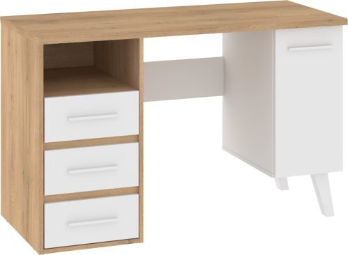 Nordis íróasztal 1 ajtó 3 fiók - Cremona tölgy - Fehér