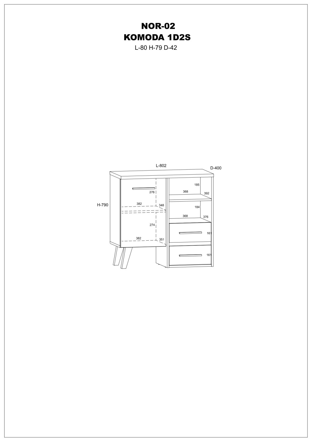 Komód 1 ajtóval 2 fiókkal az ajtó mögött polccal és nyitott polcokkal