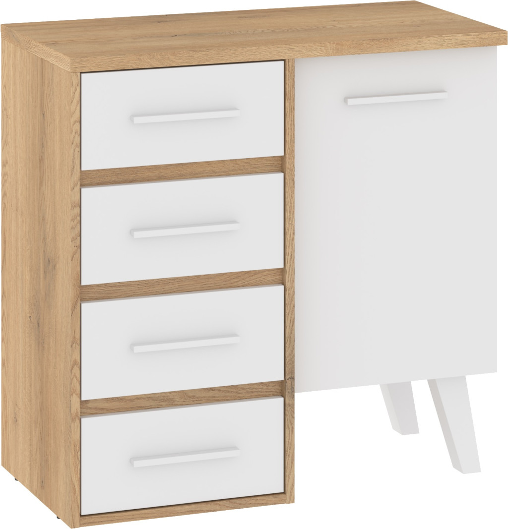 Nordis komód 1 ajtó 4 fiók - Cremona tölgy - Fehér