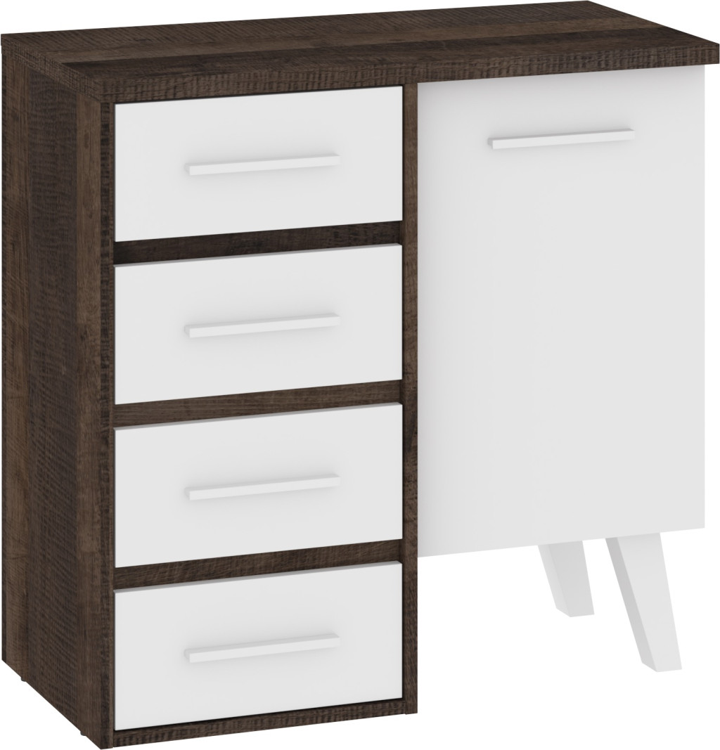 Nordis komód 1 ajtó 4 fiók - Grange tölgy - Fehér