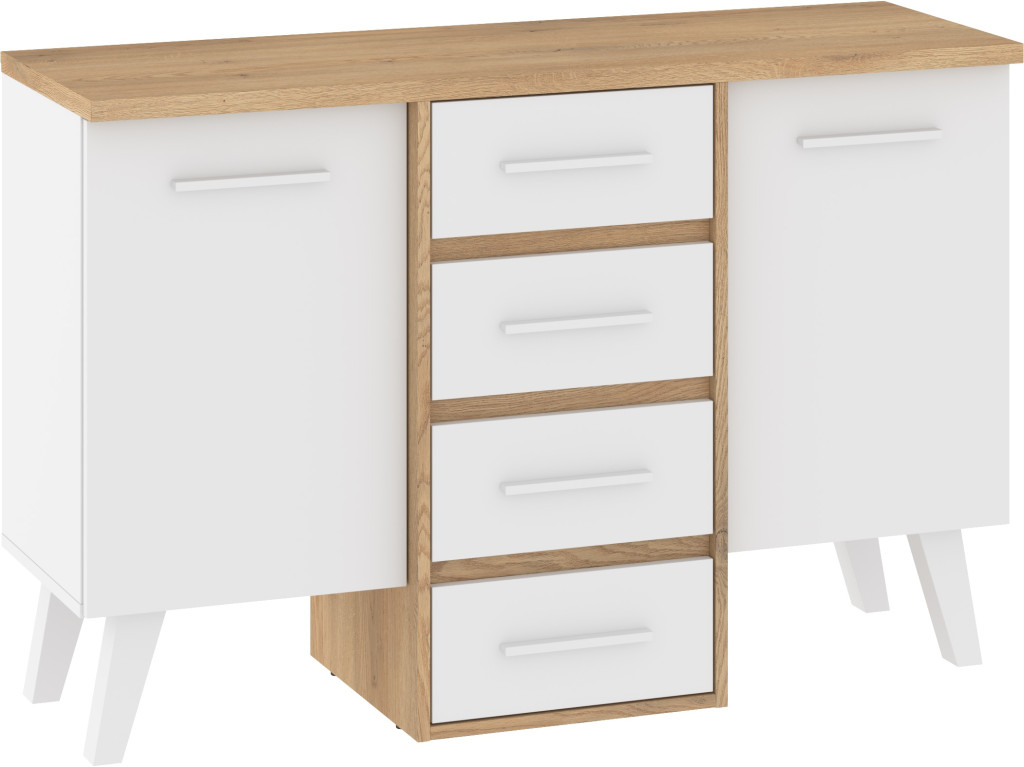 Nordis komód 2 ajtó 4 fiók - Cremona tölgy - Fehér