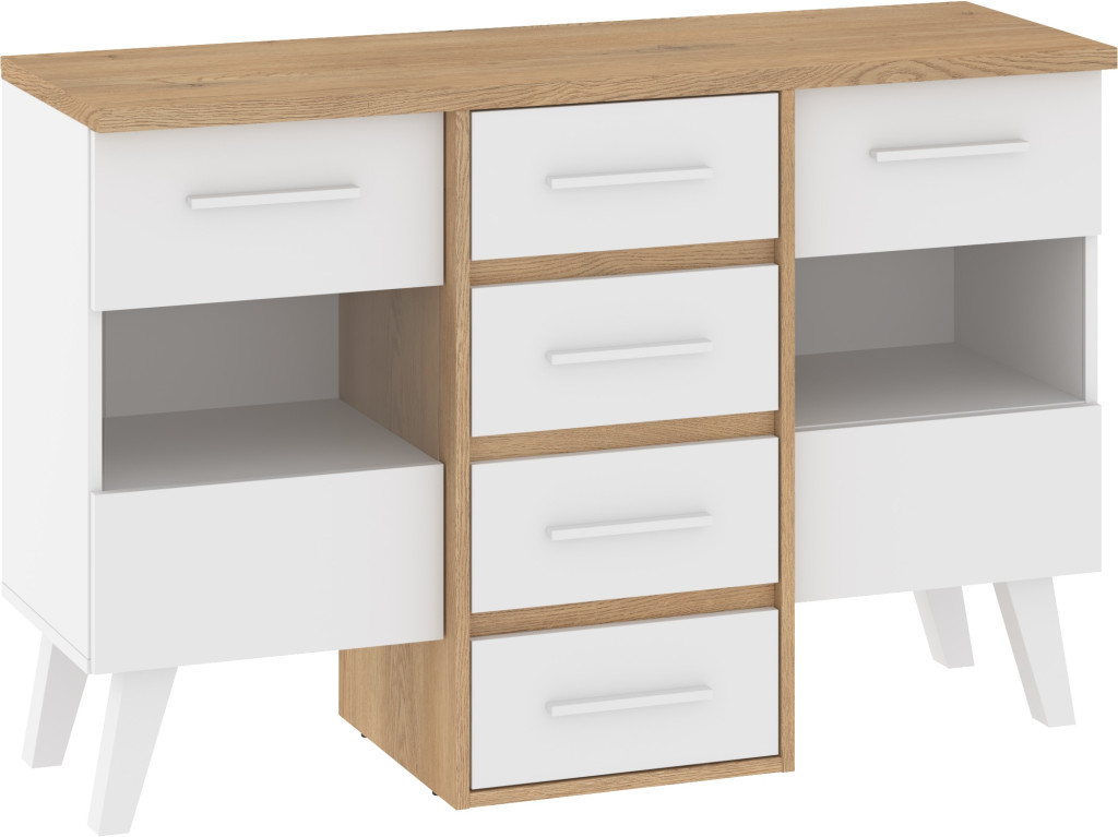 Nordis komód 2 üvegajtó 4 fiók - Cremona tölgy - Fehér