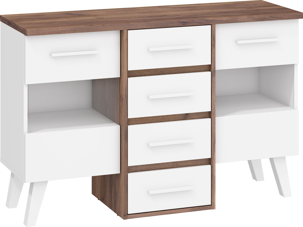 Nordis komód 2 üvegajtó 4 fiók - Tobacco tölgy - Fehér