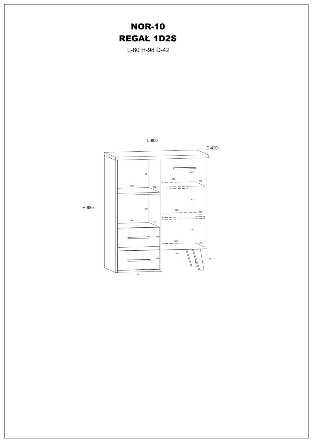 Könyvespolc 1 ajtóval 2 fiókkal az ajtók mögött polcokkal és nyitott polcokkal