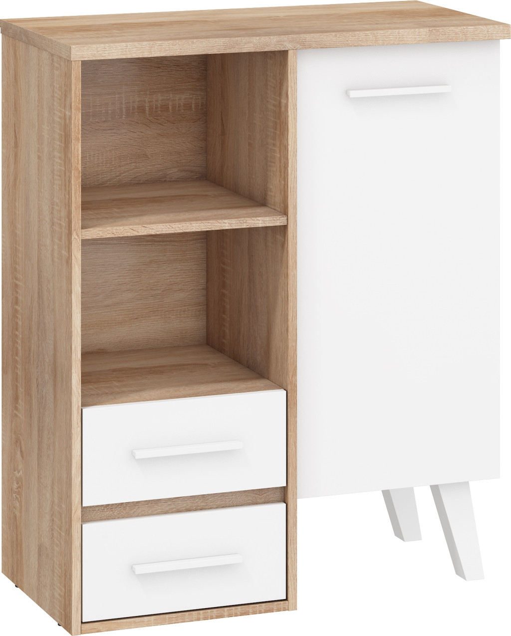 Nordis könyvespolc 1 ajtó 2 fiók - Világos Sonoma tölgy - Fehér