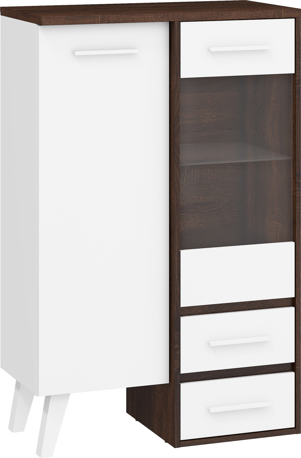 Nordis könyvespolc 2 ajtó 2 fiók - Sötét Sonoma tölgy - Fehér