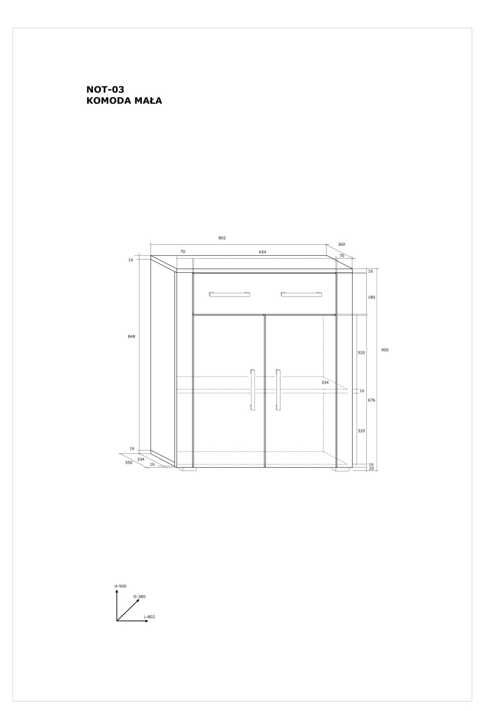 Komód 2 ajtóval 1 fiókkal az ajtók mögött polcokkal