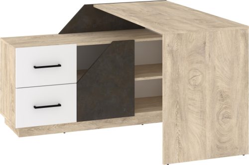 Sarok íróasztal kombináció 1 ajtóval 2 fiókkal nyitott polcokkal, balos