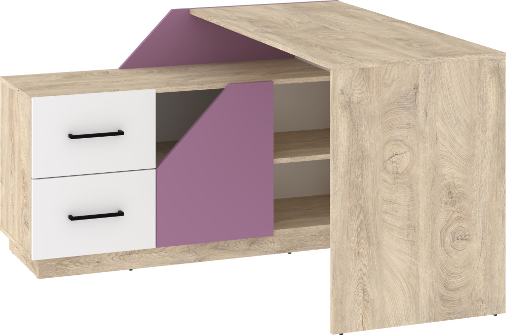 Pax 120L sarok íróasztal kombináció balos - Endgrain tölgy - Fehér - Levendula