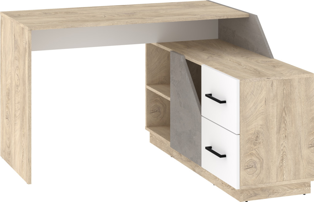 Pax 120P sarok íróasztal kombináció jobbos - Endgrain tölgy - Fehér - Beton szürke