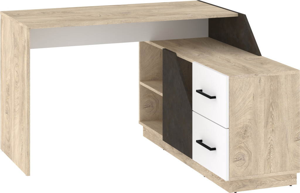 Sarok íróasztal kombináció 1 ajtóval 2 fiókkal nyitott polcokkal, jobbos