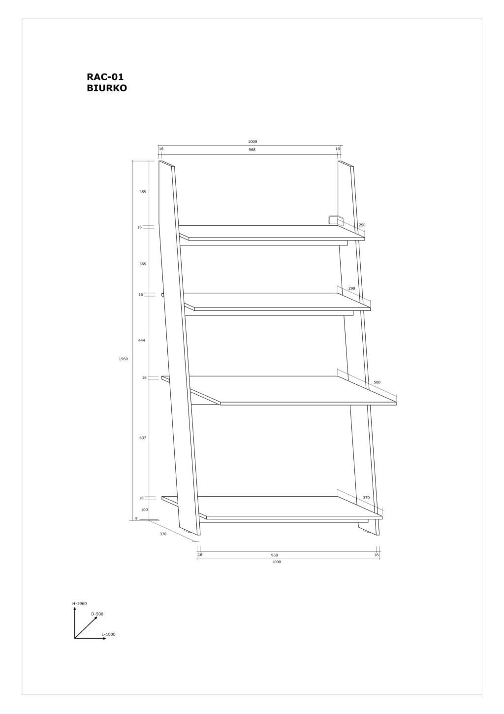 Rack íróasztal - Fehér tölgy
