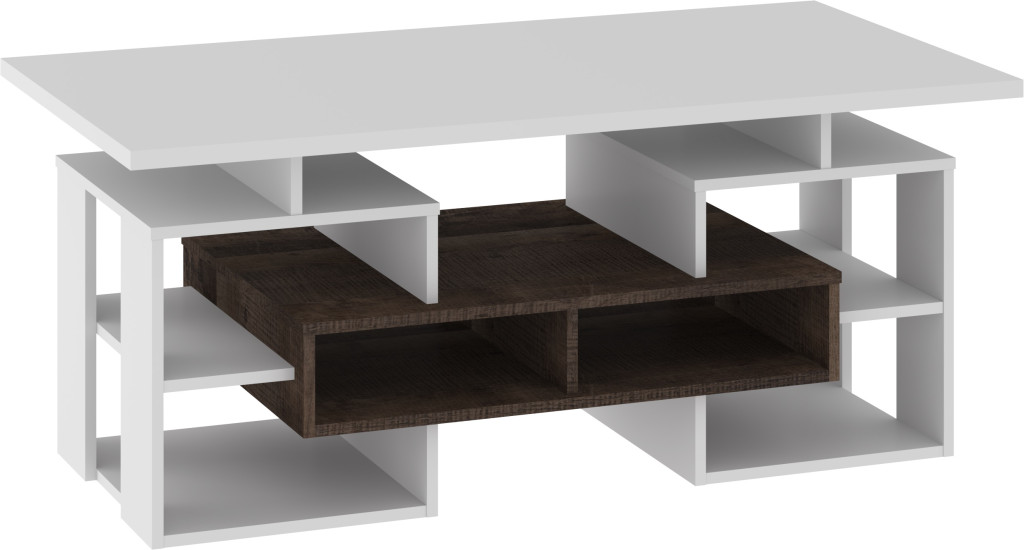Dohányzóasztal nyitott polcokkal téglalap alakú szögletes asztallappal