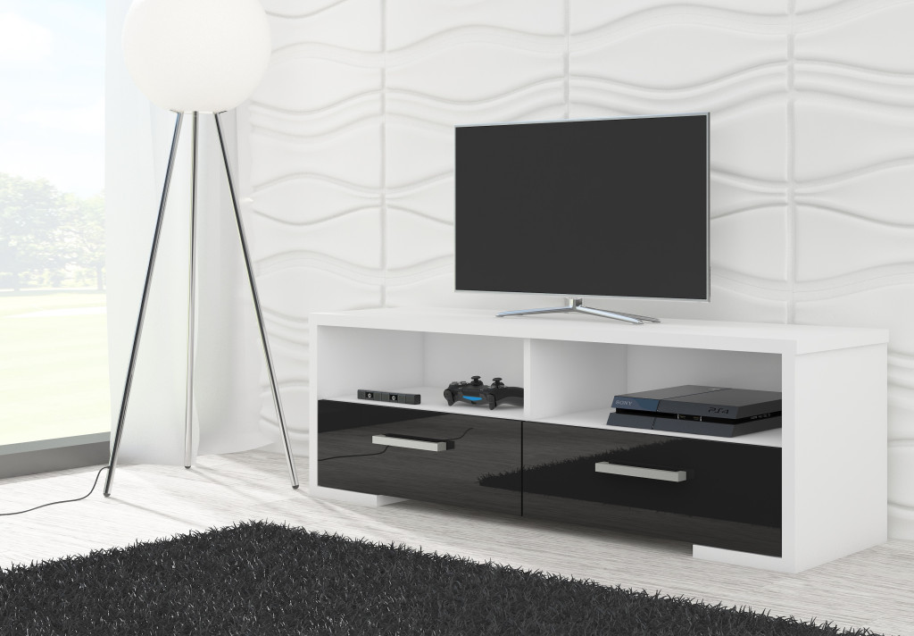 Roma TV-állvány 2 ajtó - Fehér - Fényes fekete