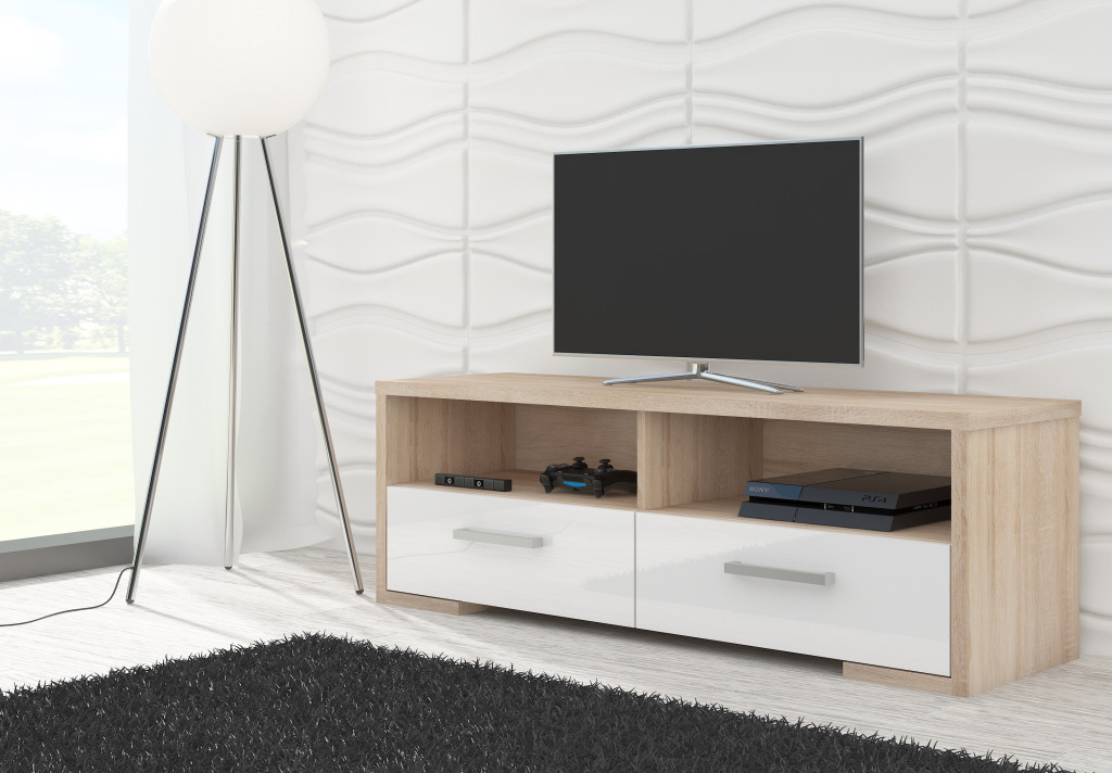 Roma TV-állvány 2 ajtó - Világos Sonoma tölgy - Fényes fehér
