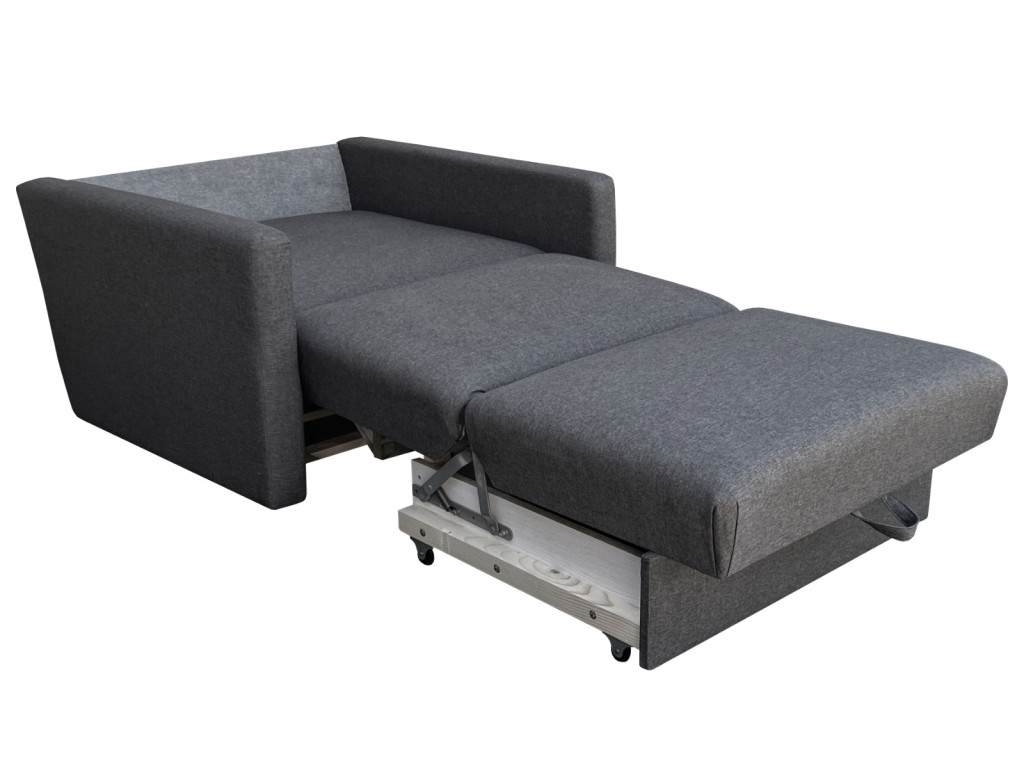 fotel, fotelágy, kinyitható fotelágy, fotelágy ágyneműtartóval, szürke fotelágy,