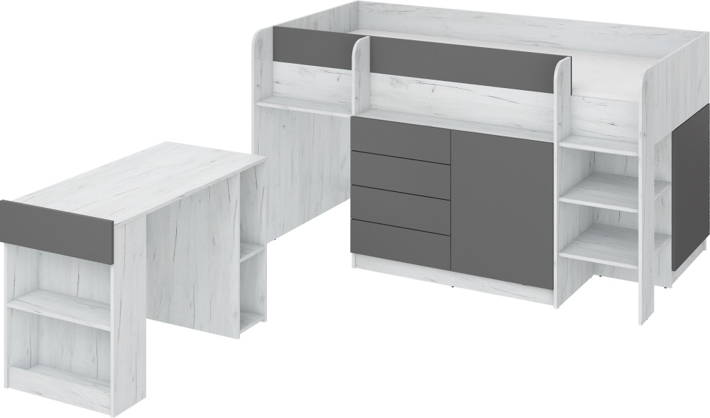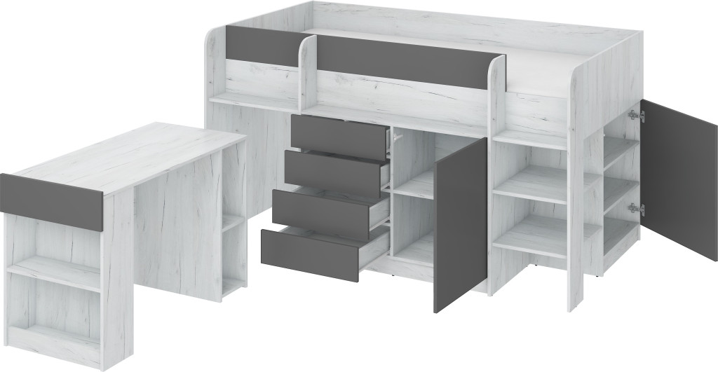 Smile galériaágy jobbos - Fehér tölgy - Szürke
