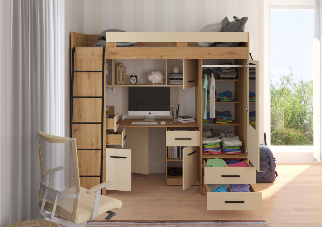 Smyk galériaágy balos - Artisan tölgy - Krém