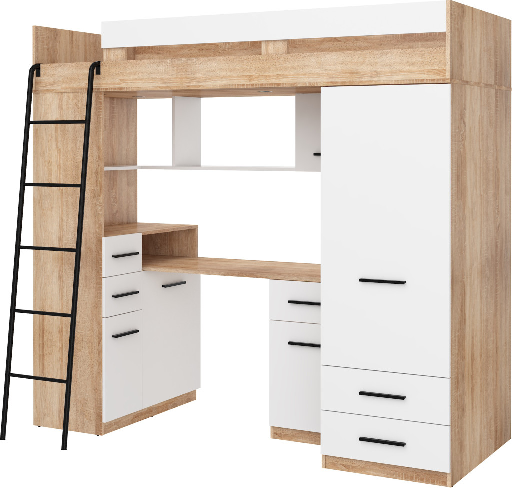 Smyk galériaágy balos - Világos Sonoma tölgy - Fehér