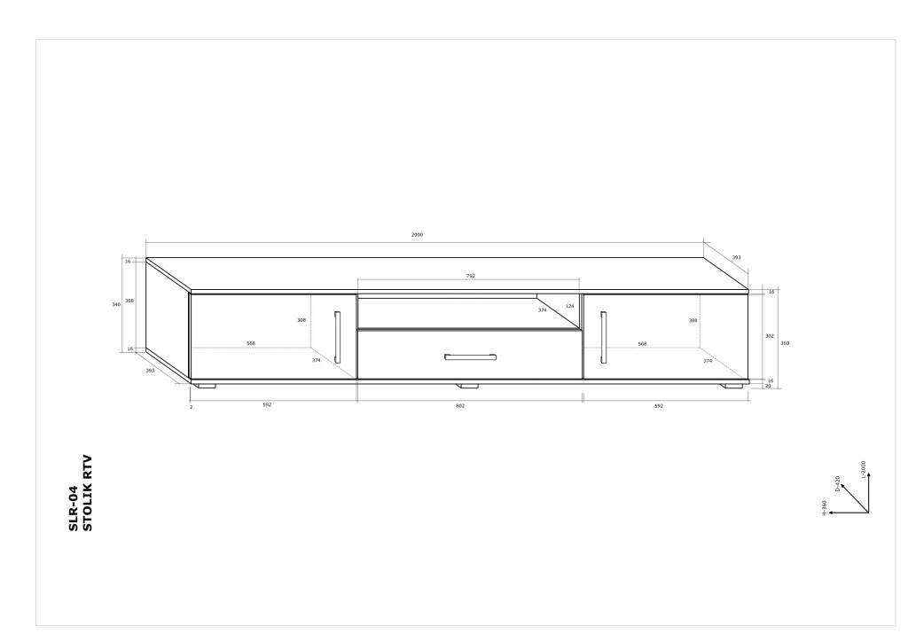 TV-állvány 2 ajtóval 2 fiókkal és nyitott polccal