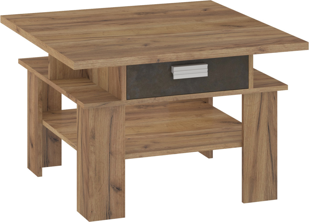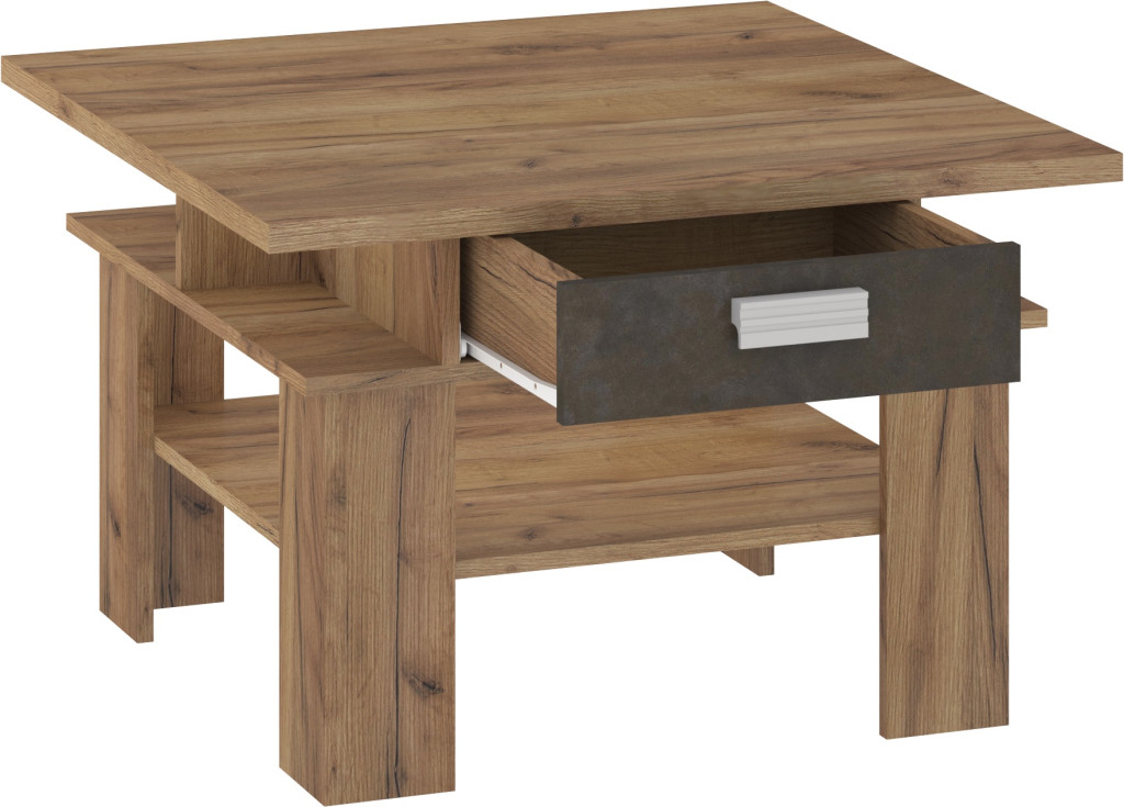 Dohányzóasztal 2 fiókkal nyitott polcokkal és négyzet alakú szögletes asztallappal