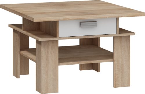 Solo dohányzóasztal 2 fiók - Világos Sonoma tölgy - Fényes fehér