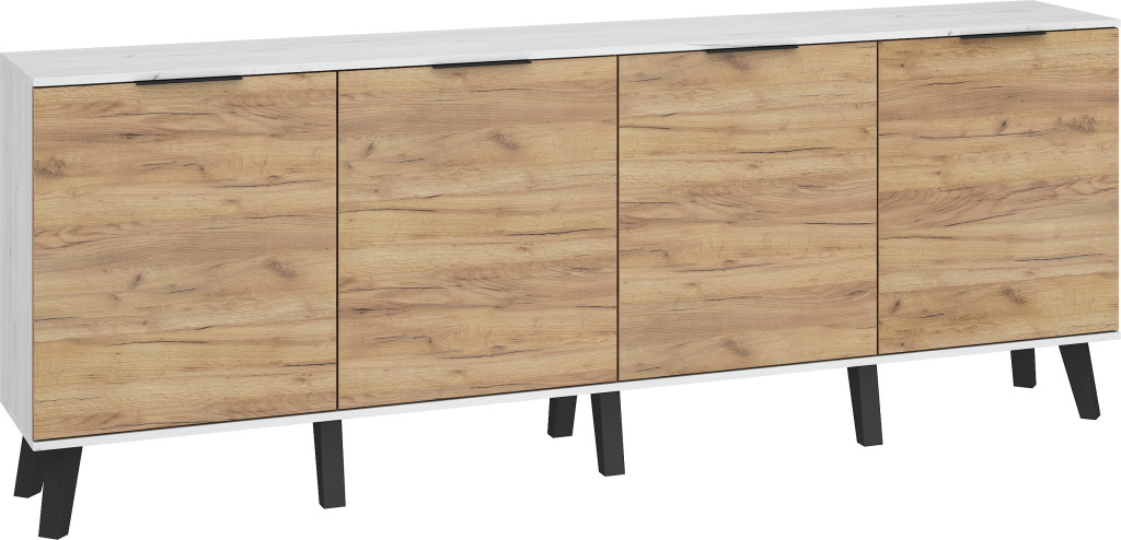 Sven komód 4 ajtó - Fehér tölgy - Arany tölgy