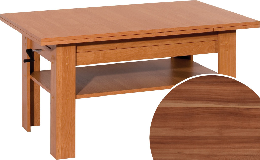 Emelhető és nagyobbítható kihúzható dohányzóasztal téglalap alakú szögletes asztallappal