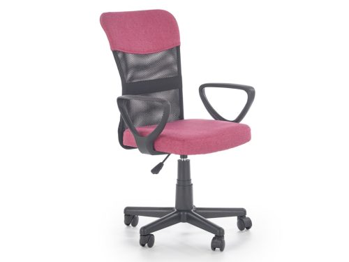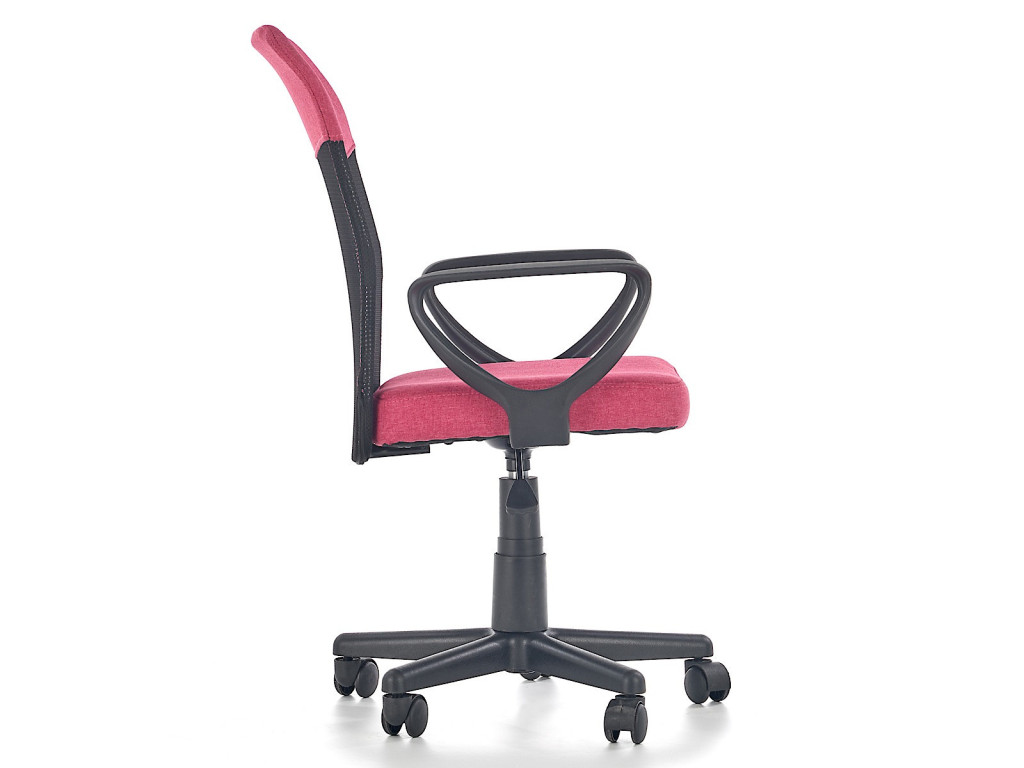 Állítható magasságú, karfás gyerek forgószék, szövet borítással, hálós háttámlával.